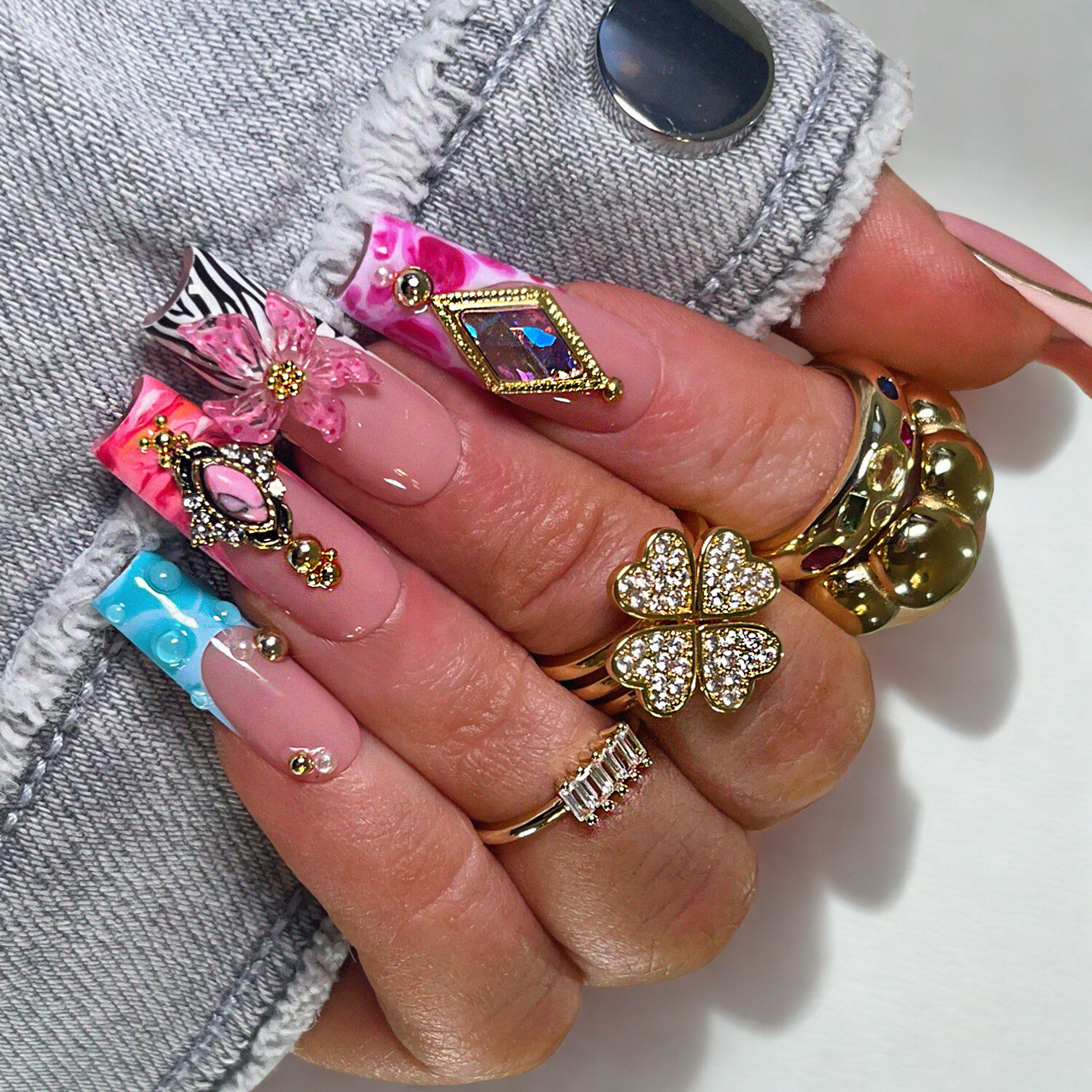 Nailzsy Press Ons: Luxury press-on nails using Apres nail gel tips. All sets are hand-painted using the highest quality gel & top coat. All products used are the products you'd see used in a high end salons. Every nail set is thick, sturdy, and durable for reusable use and a acrylic-like finish to give a luxury nail feel.