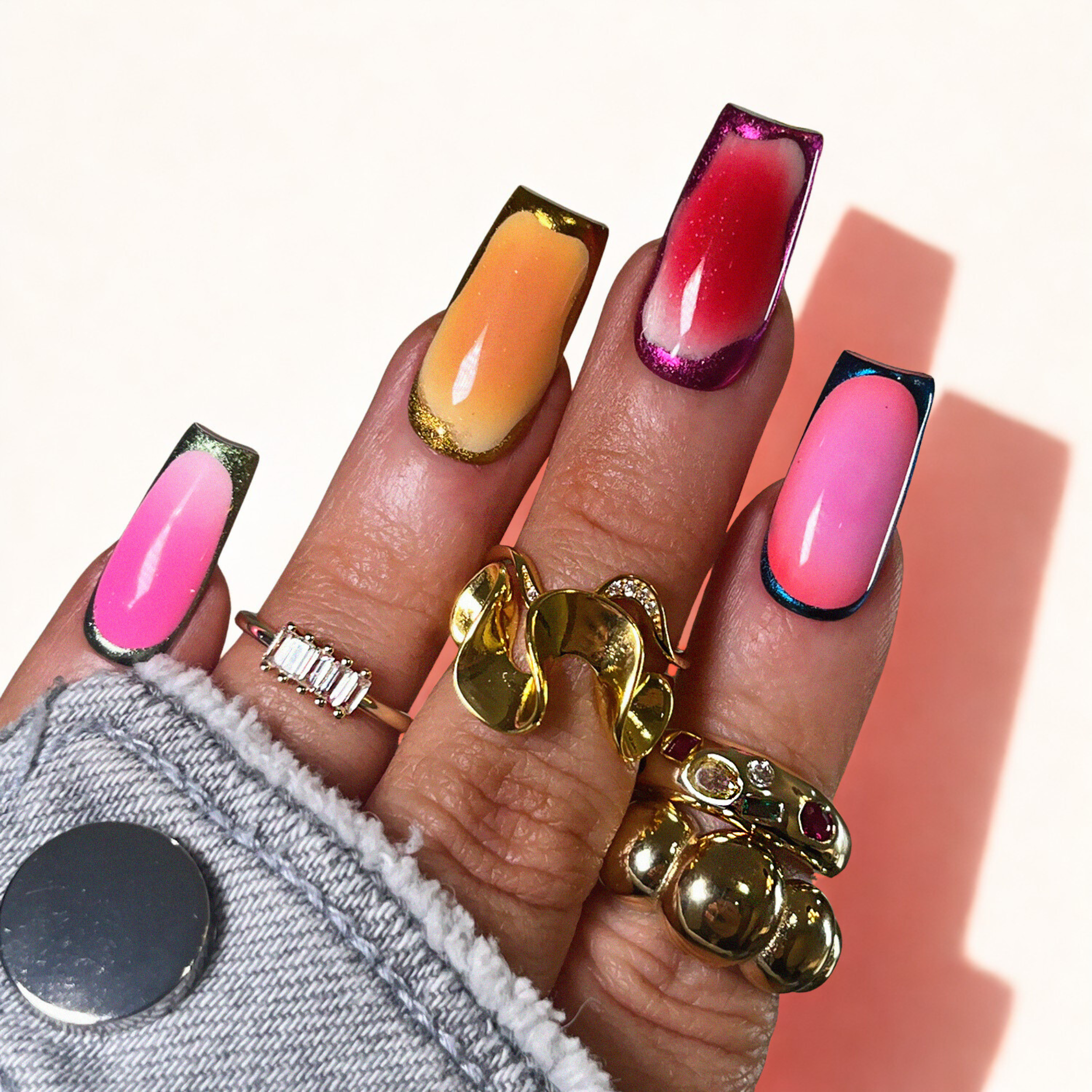 Nailzsy Press Ons: Luxury press-on nails using Apres nail gel tips. All sets are hand-painted using the highest quality gel & top coat. All products used are the products you'd see used in a high end salons. Every nail set is thick, sturdy, and durable for reusable use and a acrylic-like finish to give a luxury nail feel.
