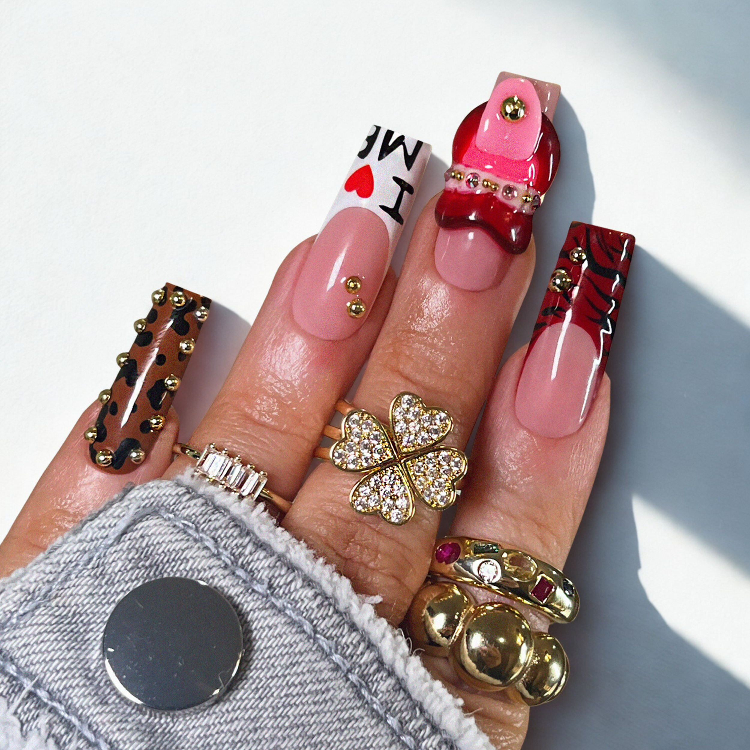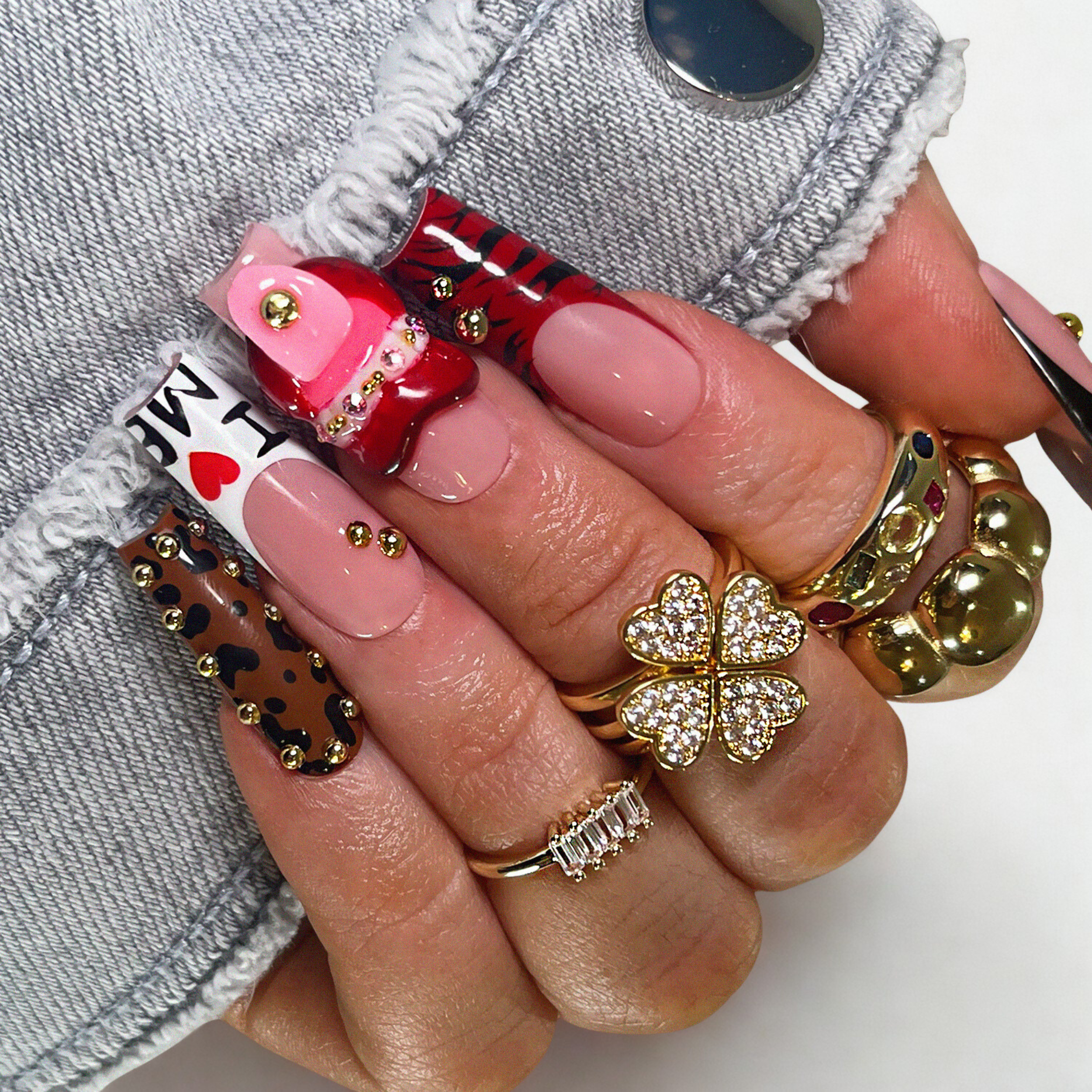 Nailzsy Press Ons: Luxury press-on nails using Apres nail gel tips. All sets are hand-painted using the highest quality gel & top coat. All products used are the products you'd see used in a high end salons. Every nail set is thick, sturdy, and durable for reusable use and a acrylic-like finish to give a luxury nail feel.
