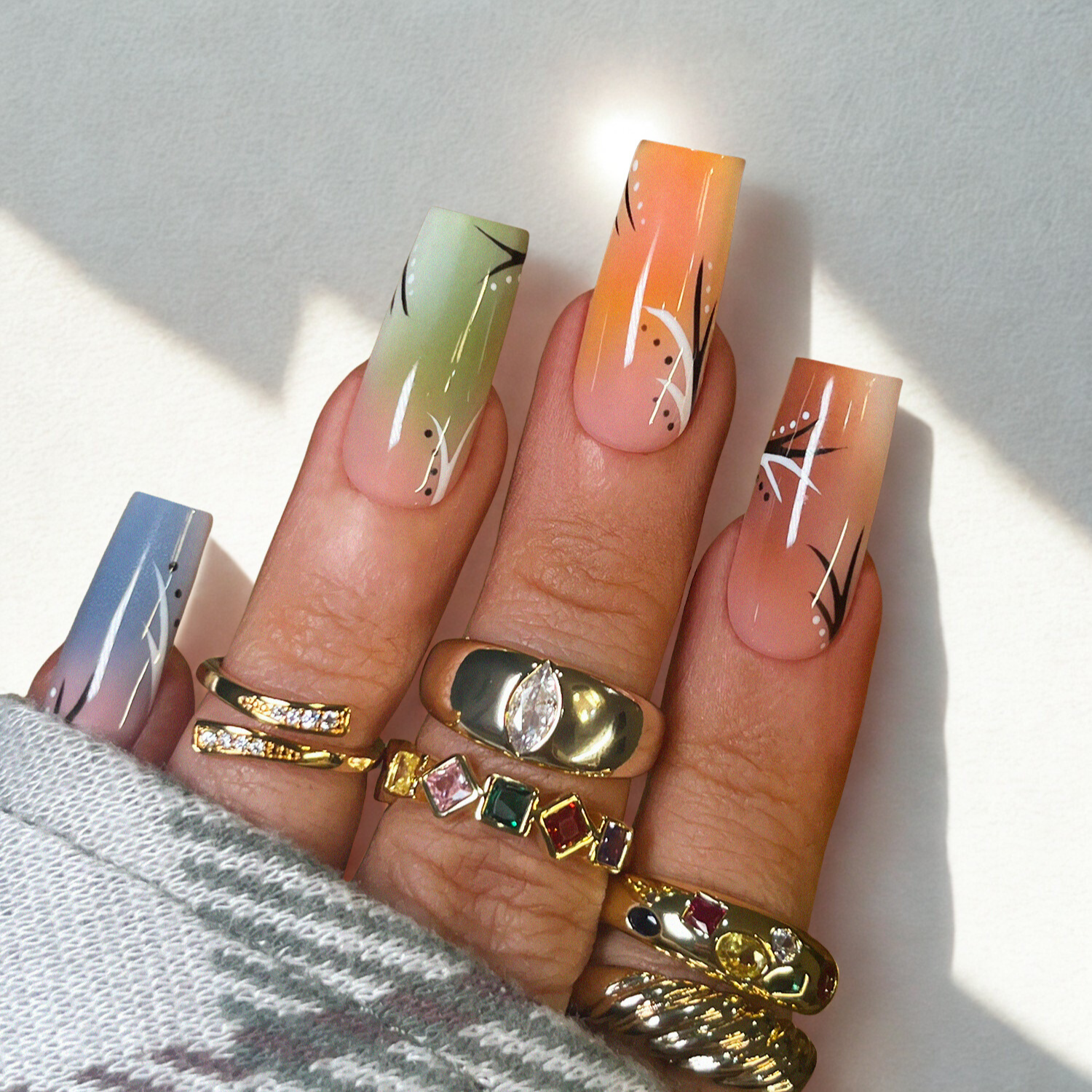Nailzsy Press Ons: Luxury press-on nails using Apres nail gel tips. All sets are hand-painted using the highest quality gel & top coat. All products used are the products you'd see used in a high end salons. Every nail set is thick, sturdy, and durable for reusable use and a acrylic-like finish to give a luxury nail feel.