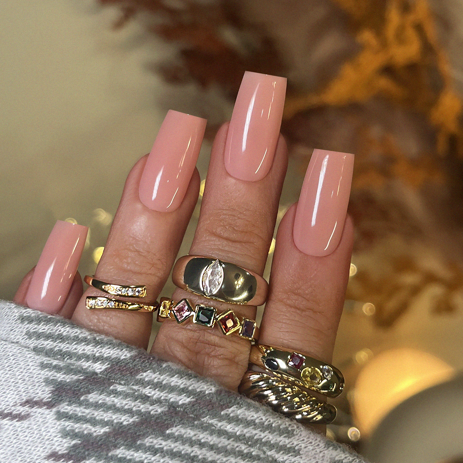 A peachy-nude base. Base colors can be worn on their own or typically are used as the color under a french tip/ombre/design.