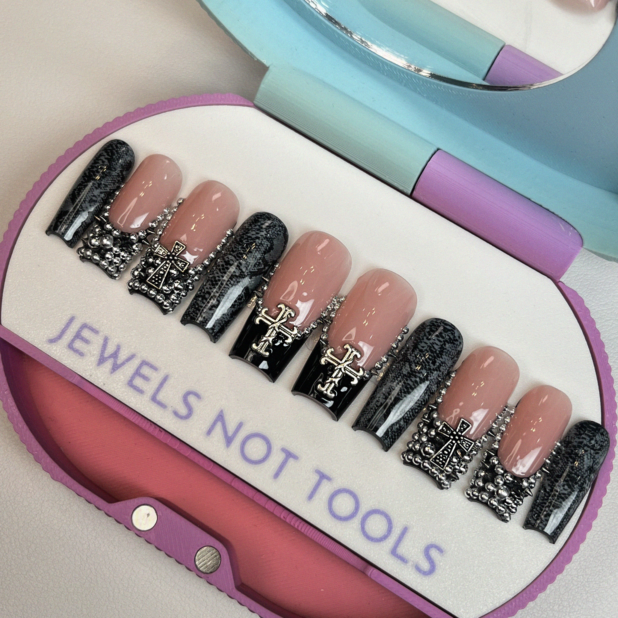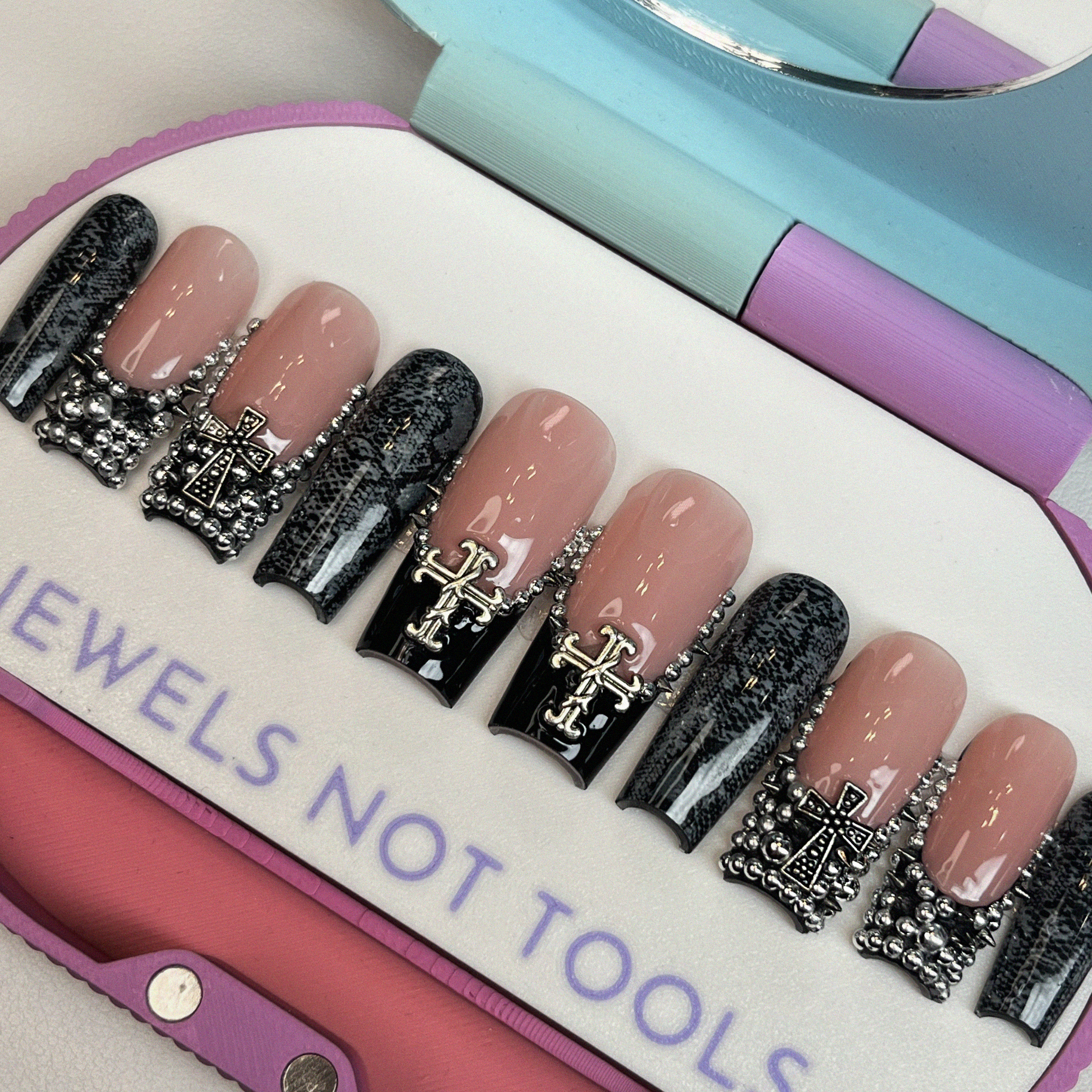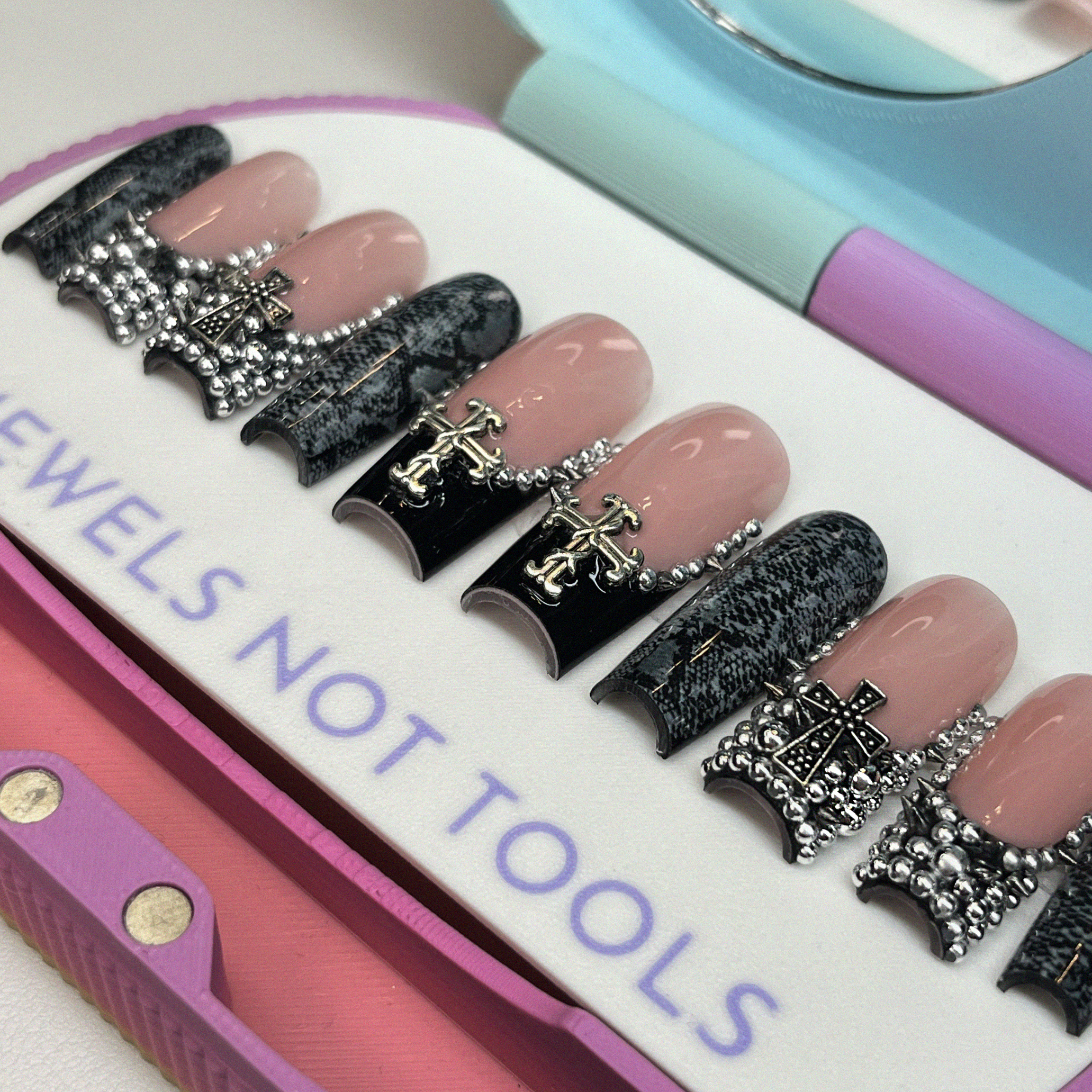 Nailzsy Press Ons: Luxury press-on nails using Apres nail gel tips. All sets are hand-painted using the highest quality gel & top coat. All products used are the products you'd see used in a high end salons. Every nail set is thick, sturdy, and durable for reusable use and a acrylic-like finish to give a luxury nail feel.
