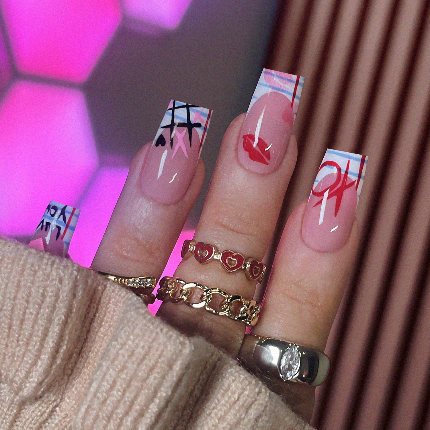 Nailzsy Press Ons: Luxury press-on nails using Apres nail gel tips. All sets are hand-painted using the highest quality gel & top coat. All products used are the products you'd see used in a high end salons. Every nail set is thick, sturdy, and durable for reusable use and a acrylic-like finish to give a luxury nail feel.